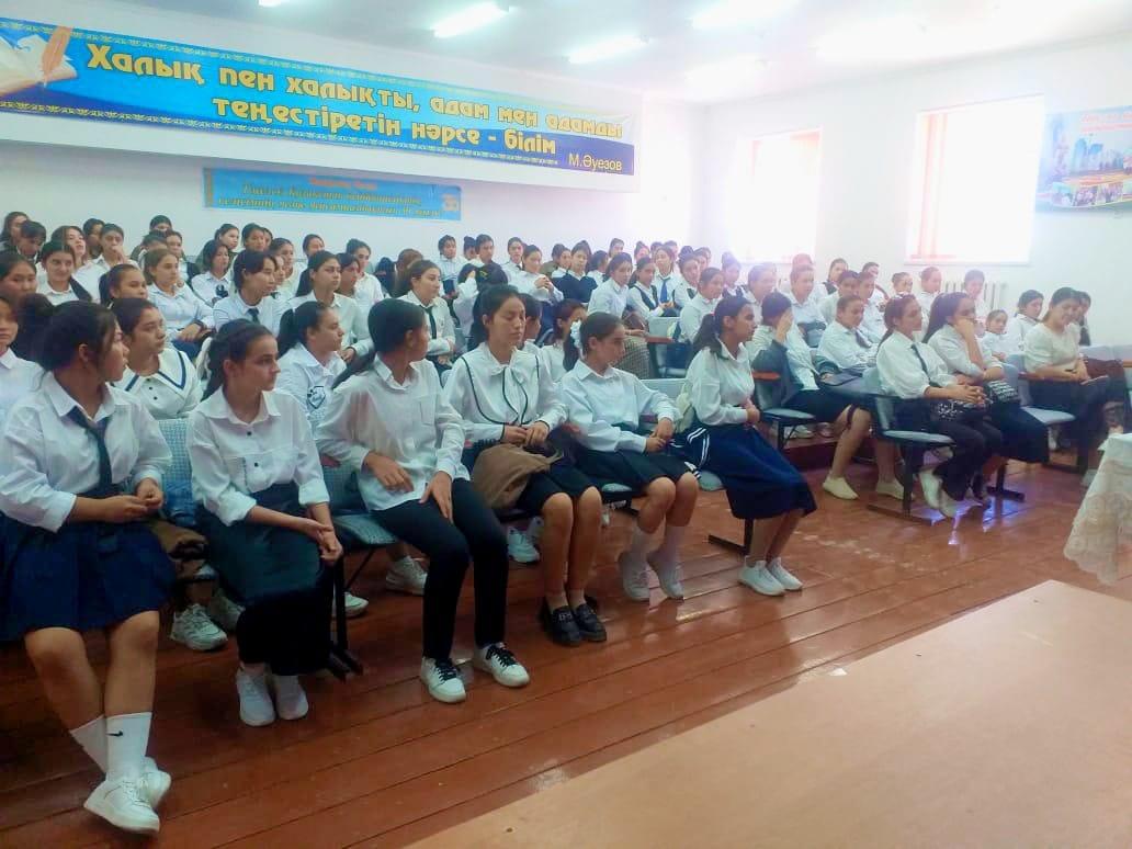 білім беретін мектебі» коммуналдық мемлекеттік мекемесінде 2022 жылдың 14 қыркүйек күні 8-11 сыныптың қыздар арасындағы түрлі келеңсіздіктердің, құқықбұзушылықтың алдын алу мақсатында жиналыс өткізілді. Жиналыс мақсаты қыздарды ұлттық салт-дәстүрлерді қастерлеп, тәрбиелі, білімді, өнерлі болып өсуге, қыз бала гигиеналық тазалықты дұрыс және күнделікті сақтауға үйрету; өз бойларын, ойын дөрекіліктен сақтандыру; қызарды инабатты қыз болып өсуге баулу.